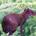 The paca has a similar shape to the agouti but is a bit larger and usually only comes out at night. What distinguishes them most is that the Paca has creamy white spots on its brown body and a white belly.