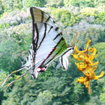 These butterflies eat banana leaves when they're young. The caterpillar is very, very ugly, but look at the beautiful butterfly it becomes!